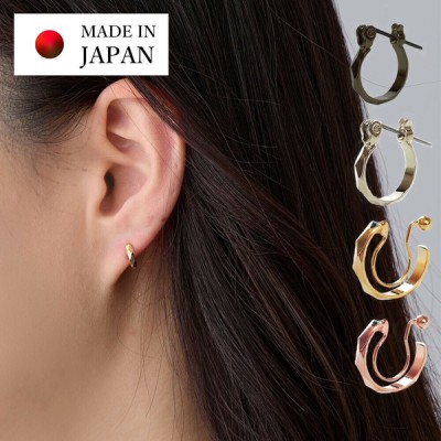 日本製 イヤリング ピアス 小ぶり ノンホールピアス ダイヤカット ブラック フープ メンズ ジュエリー
